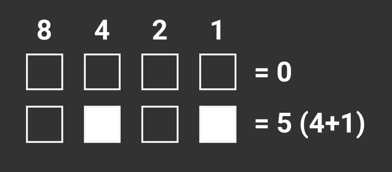 Een computer slaat gegevens op met bits. Een bit kan je vertalen naar een 0 of een 1. Een bit met waarde 0 staat uit en een bit met waarde 1 staat aan. Met dit systeem kan je getallen maken. Dat gaat als volgt: