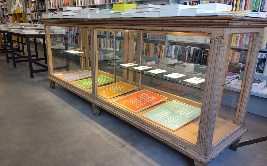 Het resultaat is nu te zien in de vitrinekast bij die boekhandel: