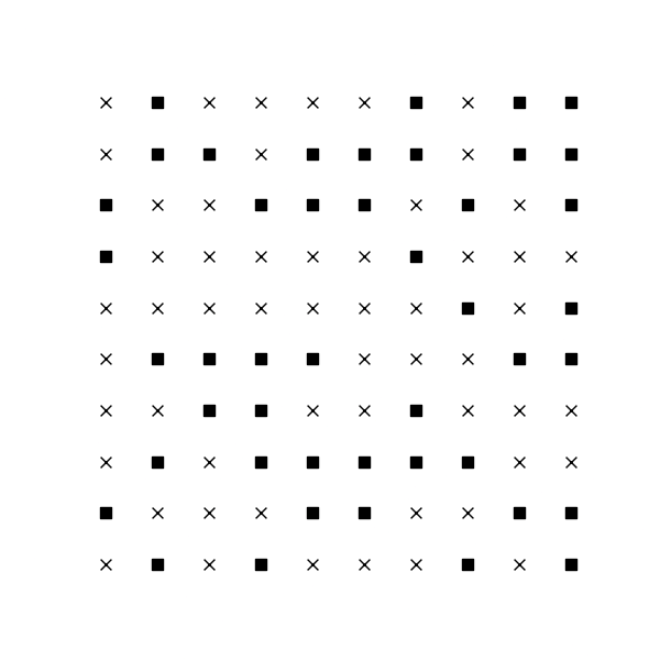 Laten we alle benodigde data in beeld brengen als 100 datapunten:
